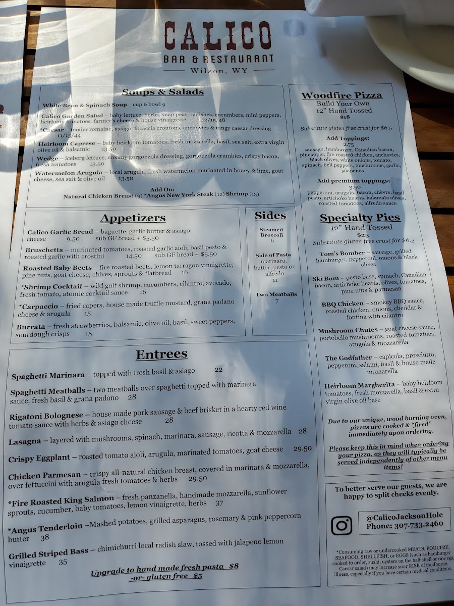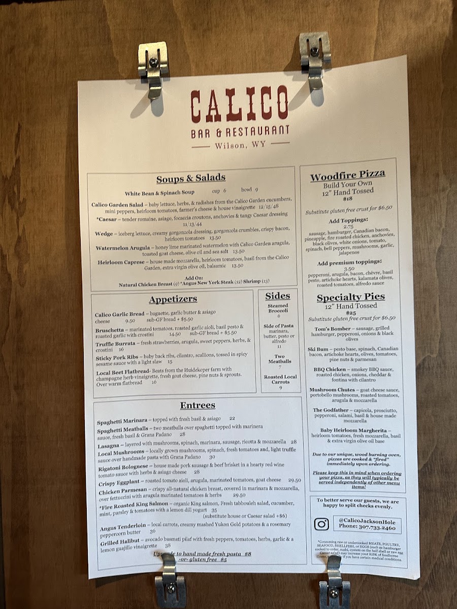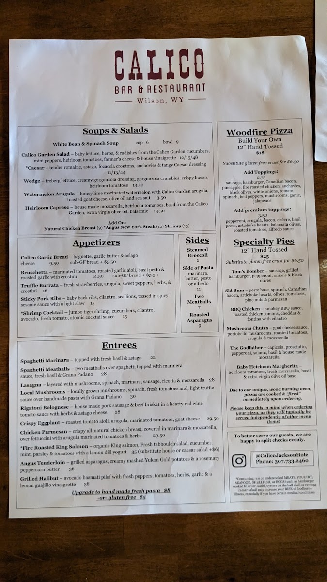 Nestled in the heart of Wilson, Wyoming, Calico Restaurant offers a delightful blend of Italian comfort food and a warm, family-friendly atmosphere. Each dish reflects a balance of hearty flavors and fresh ingredients, making it a local favorite.